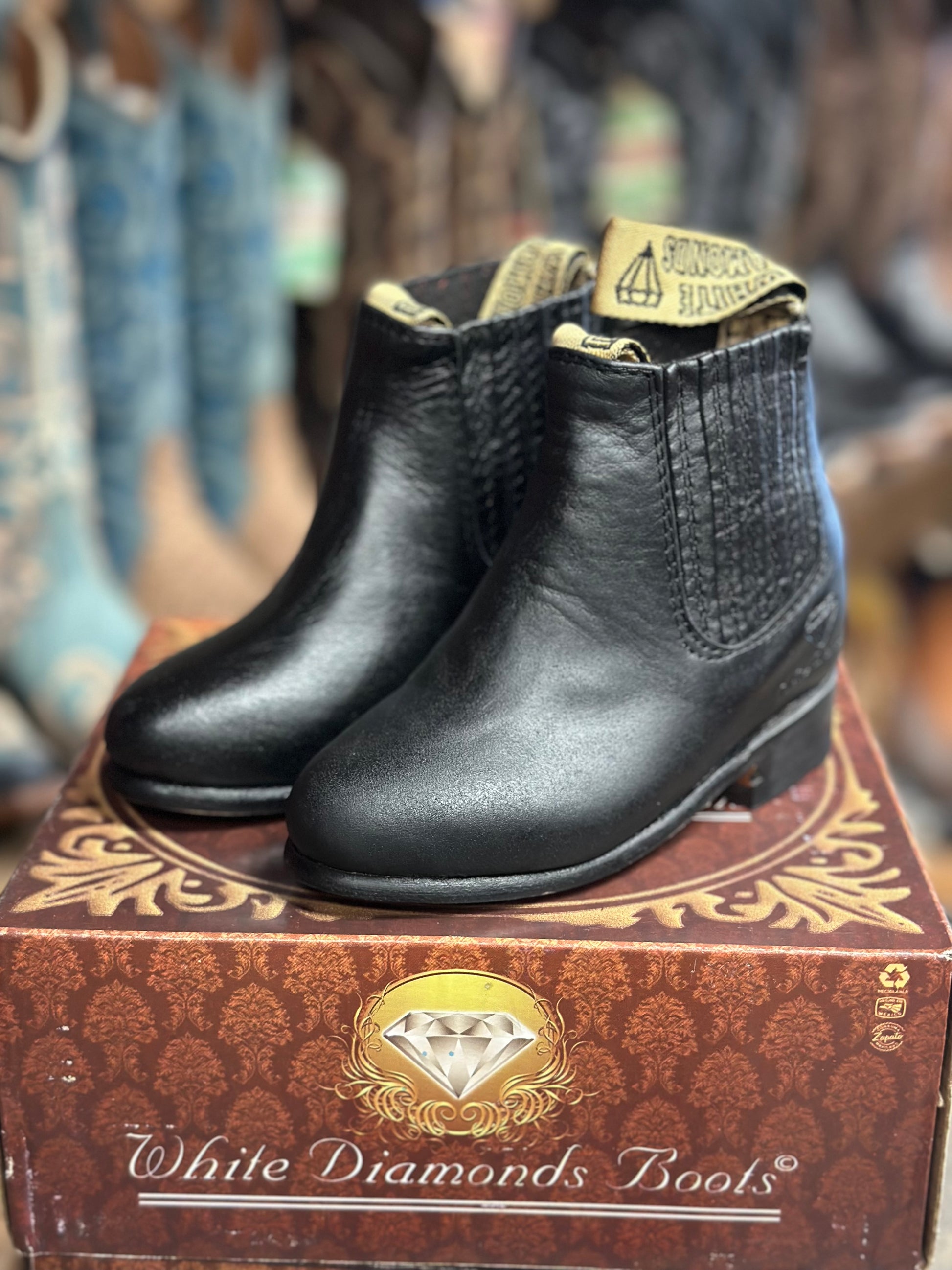 Botín charro negro de piel